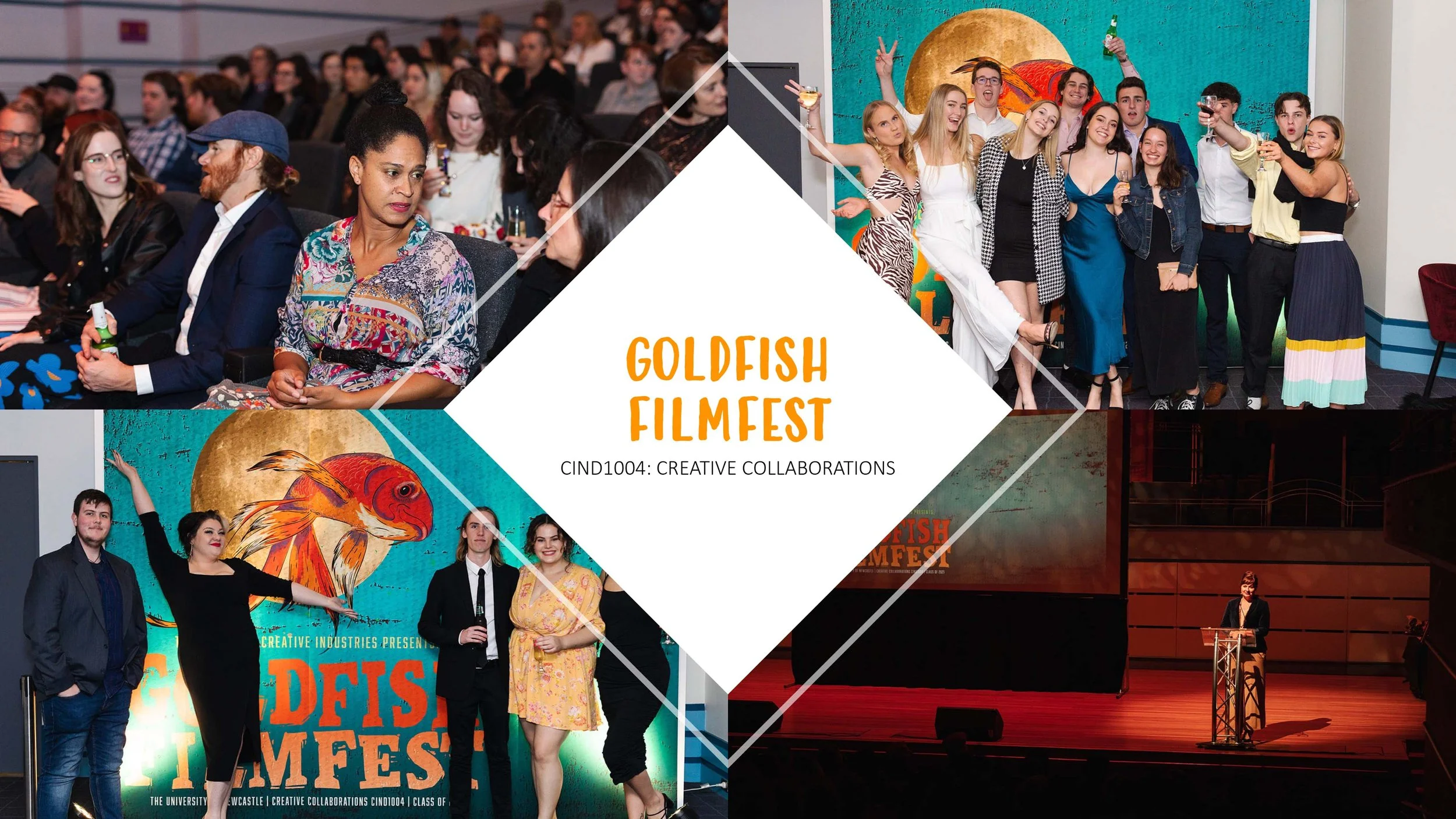 I co-ordinated the cohort of 350 students and 10 tutors over a 5 month period in 2021/2022 and employed many creative problem solving skills while dealing with ongoing Covid restrictions. Approximately 70 short films were submitted and my curated collection of 30 were judged by relevant Industry representatives. The winners received a special Goldfish shaped 3D printed trophy, which I designed. We had booked-out opening nights at the Newcastle Conservatorium both years.